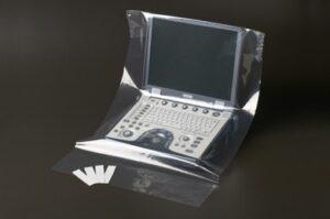 Niesterylna osłona polietylenowa o wymiarach 6 x 4,4 x 24,1 cm, zwężająca się do 4,4 x 24,1 cm, z żelem, nie zawiera naturalnego kauczuku lateksowego. Opakowanie 100 szt.