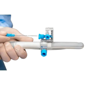 Prowadnik igły, który charakteryzuje się większą elastycznością i zaawansowanymi funkcjami, w celu zwiększenia wydajności. Wsporniki kątowe mogą zaoferować wielu profesjonalistom różne kąty dla umieszczenia igły. Otwarta konstrukcja kanału prowadnicy umożliwia pozycjonowanie instrumentów w płaszczyźnie skanowania, zapewniając bezpieczny i wydajny sposób wykonywania procedur nakłucia pod kontrolą USG. Prowadnica mocowana jest do dowolnej ,wielokrotnego użytku obejmy na głowicę USG CIVCO Ultra-Pro. Ta prowadnica igłowa jest dostępna dla igieł 12GA i mniejszych. Sterylne zestawy zamienne zawierają prowadnicę, osłonę sondy USG, pakiet żelu i kolorowe gumki. Zmniejsza zmienność techniki, zapewniając krótszą krzywą uczenia się i skrócony czas procedury. Jednorazowa konstrukcja zmniejsza ryzyko zakażenia krzyżowego i zwiększa produktywność z łatwością i bezpieczeństwem.